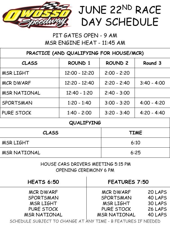 Race Day Schedule for the MSR Sprints and Tommy Bowles Memorial!