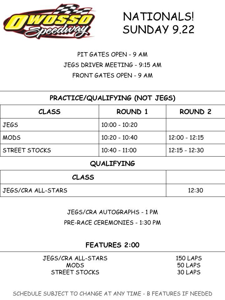 -Pay for heat races is normal Owosso pay. 1st-$30, 2nd-$25, 3rd-$20, 4th-$15.