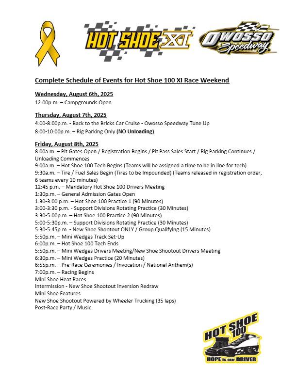 4651 8/7/2025Owosso Speedway Hot Shoe 100 Schedule . Submitted By: Chris Fobbe Article Media Back to News